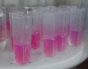 Après l'incubation, 1mL de la soude de chaque pot est prélevé séparément et dans chacun des prélèvements on y ajoute 2mL de chlorure de baryum et quelques gouttes de phénolphtaléine. Le mélange sera de couleur rose. On y ajoute ensuite de l'acide chlorhydrique jusqu'à ce que la solution soit transparente.