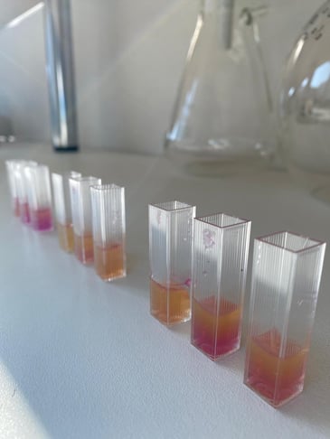 Une fois que le gel a changé de couleur, on mesure l'absorbance à une longueur d'onde précise. La différence entre l'absorbance du gel de départ et une fois qu'il y a eu un changement de couleur permet ainsi de déduire la quantité de CO2 émis lors de la respiration microbienne du sol.