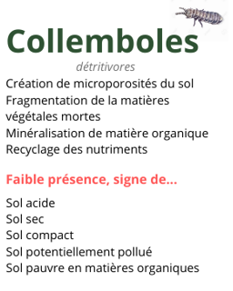 Elles sont partout ! Ces petites bêtes que l'on appelle macro-invertébrés (car visibles à l'oeil nu et dépourvues de squelette) se déplacent à la surface du sol, traversant ou survolant les herbes, et sont de véritables actrices de la qualité de nos sols. Avec les différentes rubriques ci-dessous, découvrez les rôles écologiques de chaque groupe d'animaux du sol (pédofaune) mais aussi ce que leur présence ou absence indique quant à la santé du sol (bio-indication).