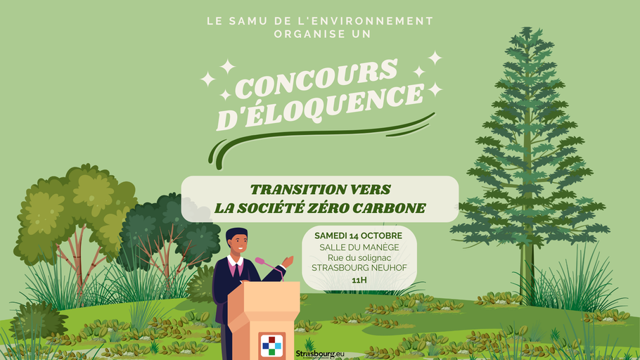 Le SAMU de l'environnement organise avec ses partenaires un concours d'éloquence sur la thématique de la transition zéro carbone. Venez défendre vos positions et vos idées sur les moyens de transiter vers un monde plus responsable !
